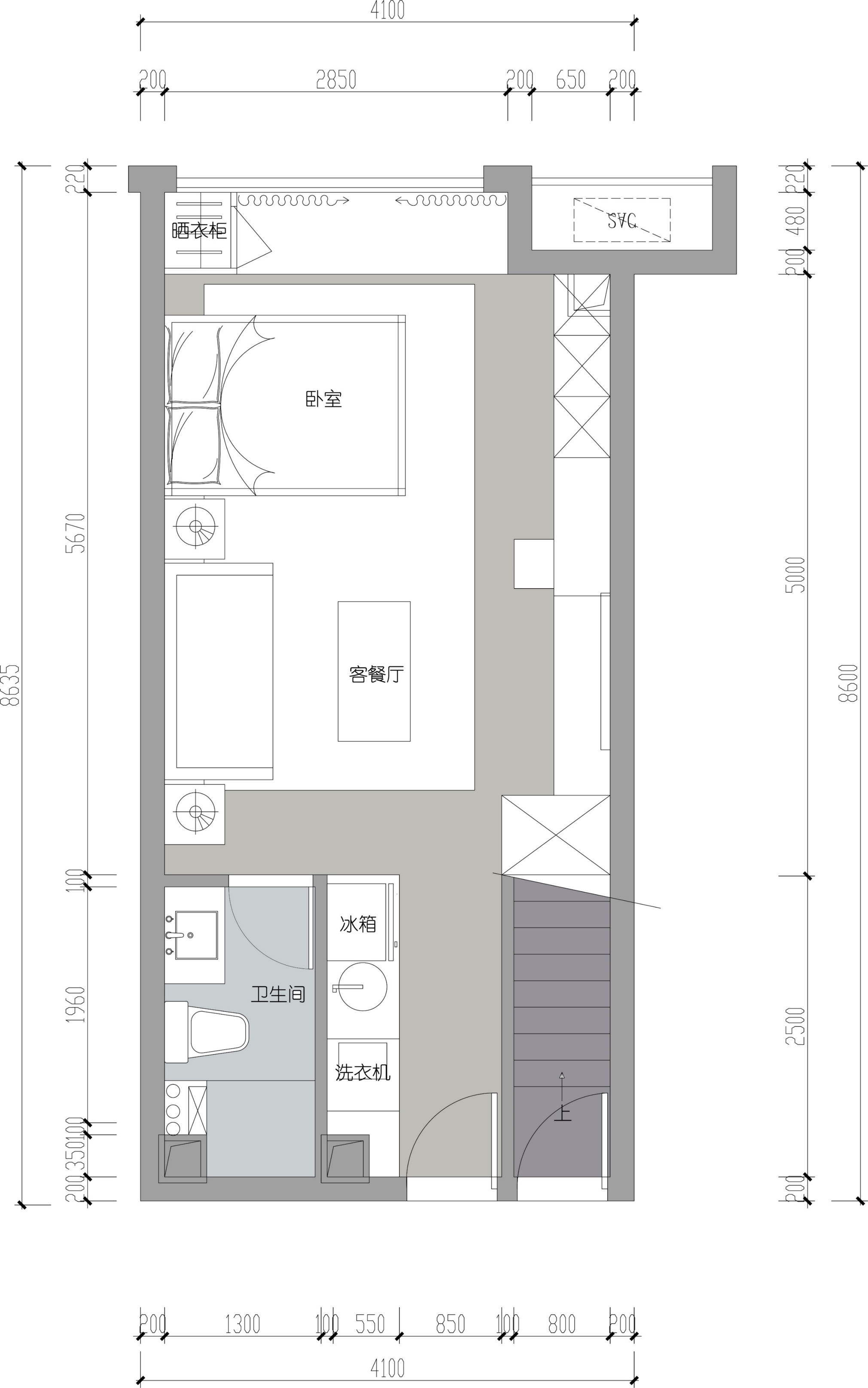 LOFT公寓樣板房 | 56㎡ 三房兩廳